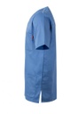 Casaca tipo sanitaria cuello pico con cierre central de botones de color a juego. Aberturas laterales para una mejor adaptación de la prenda al cuerpo. Canesú en la espalda y tres bolsillos tipo parche.