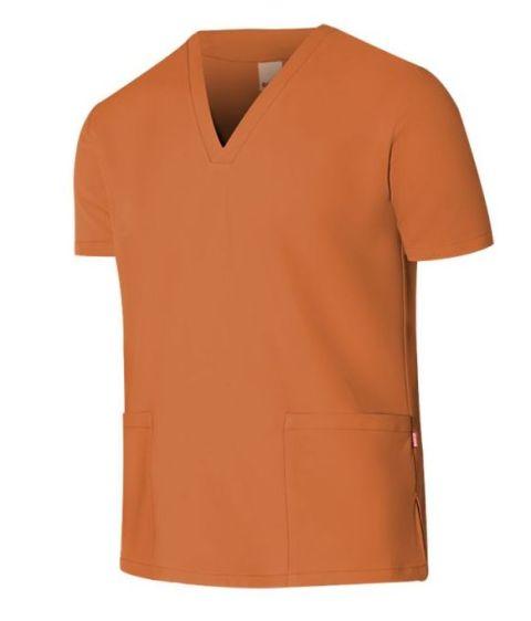 Camisola de cuello pico tipo sanitario con aberturas laterales.