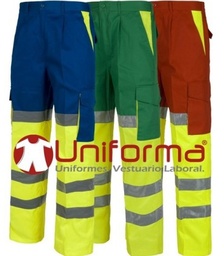 Pantalones de trabajo de alta visibilidad homologados según la norma europea EN ISO 20471 en todas las clases y colores disponibles, en diseños bicolor y mono color, tejidos actuales técnicos, hidrofugados y elásticos. Pantalones de visibilidad realzada según EN17353, con bandas reflectantes en adaptadas a las diversas situaciones de iluminación, y pantalones de trabajo con bandas reflectantes, todos, personalizables con logo de empresa en Uniforma.