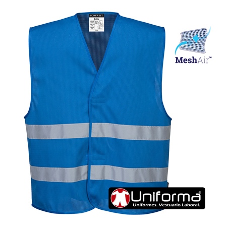 Chaleco de trabajo para ambientes calurosos en tejido microperforado transpirable.