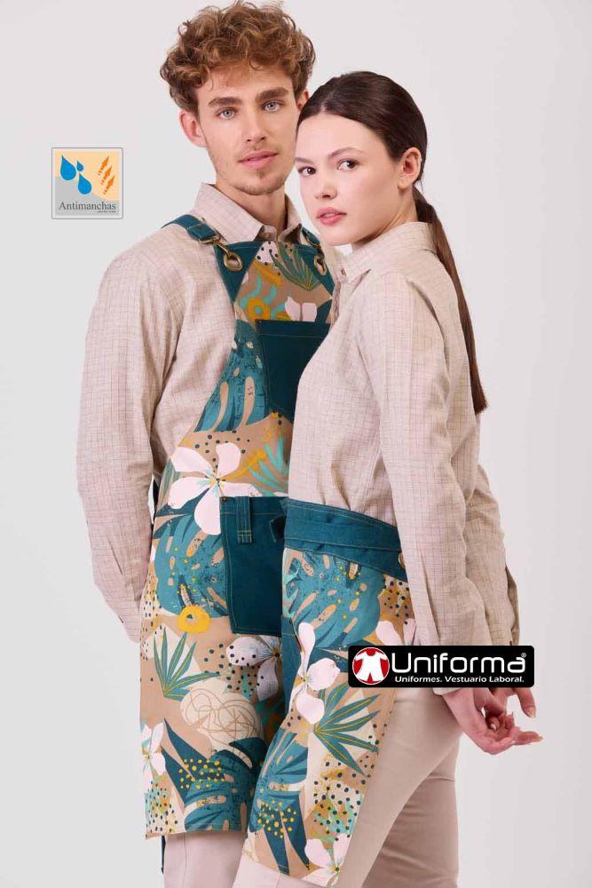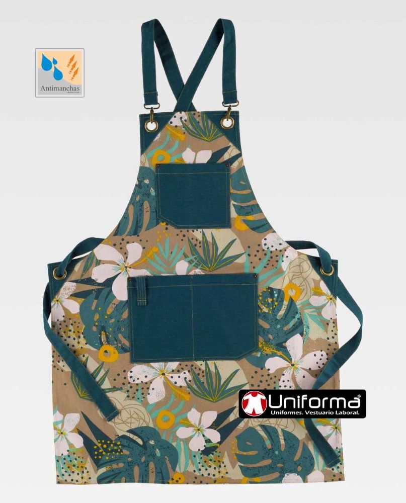 Delantal de trabajo para hostelería con peto en tejido canvas.