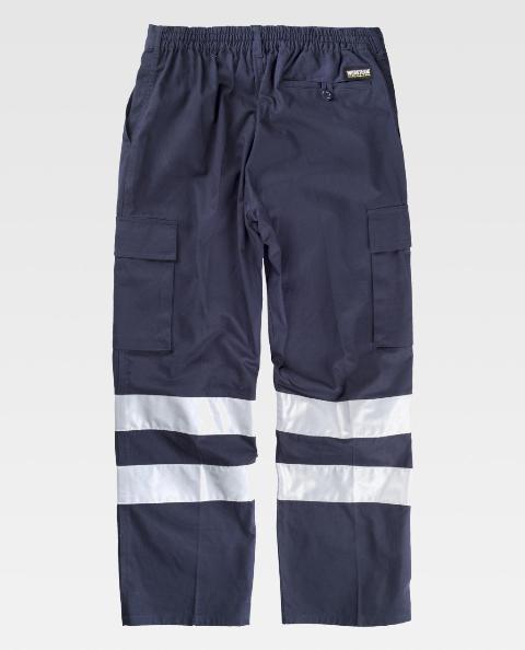 Pantalón de trabajo de corte recto confeccionado en 100% algodón con cintas reflectantes.