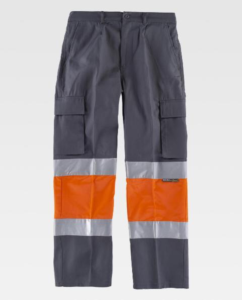 Dos cintas reflectantes cosidas en las perneras con pieza central fluorescente que refuerzan la visibilidad.