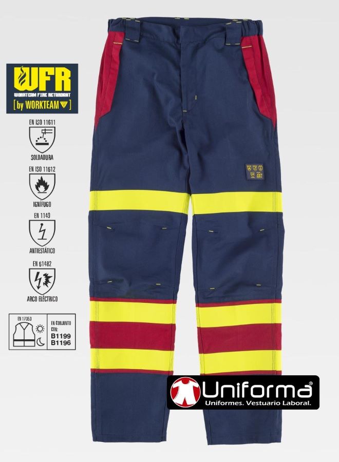 Pantalón de trabajo combinado ignífugo resistente a la llama.