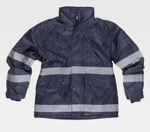 Chaquetón tipo Parka acolchada en tejido Oxford con cintas reflectantes.