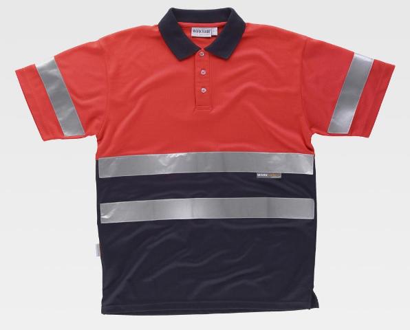 Polo combinado de manga corta en poliéster ojo de perdiz con cintas reflectantes. Parte superior de alta visibilidad. Cuello clásico en punto canalé con tapeta de tres botones y cubrecosturas interior. Una cinta reflectante en mangas y dos en pecho y espalda. Tejido fresco y ligero de alta permeabilidad al aire. Transpirable, de fácil secado y resistente al encogimiento. Aberturas laterales.